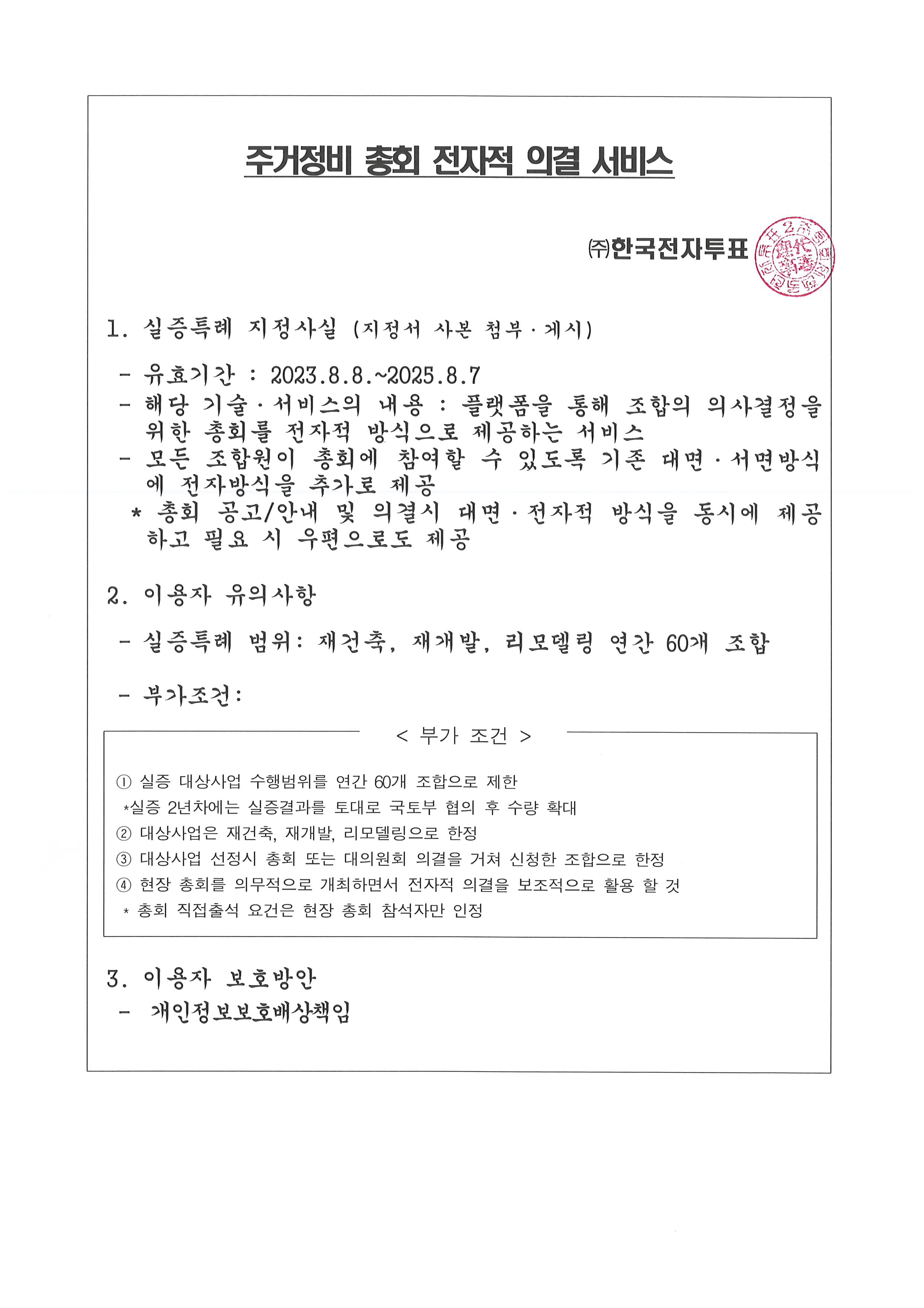 · 별도의 시장·군수의 승인 없이 대의원회 의결만으로 전자투표 서비스 이용가능