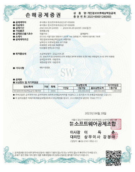보험검토위원회의 적정 판정을 받은 개인정보 배상책임공제 보험입니다.